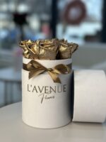 Złote Wieczne róże | Biały box | 4 wieczne róże