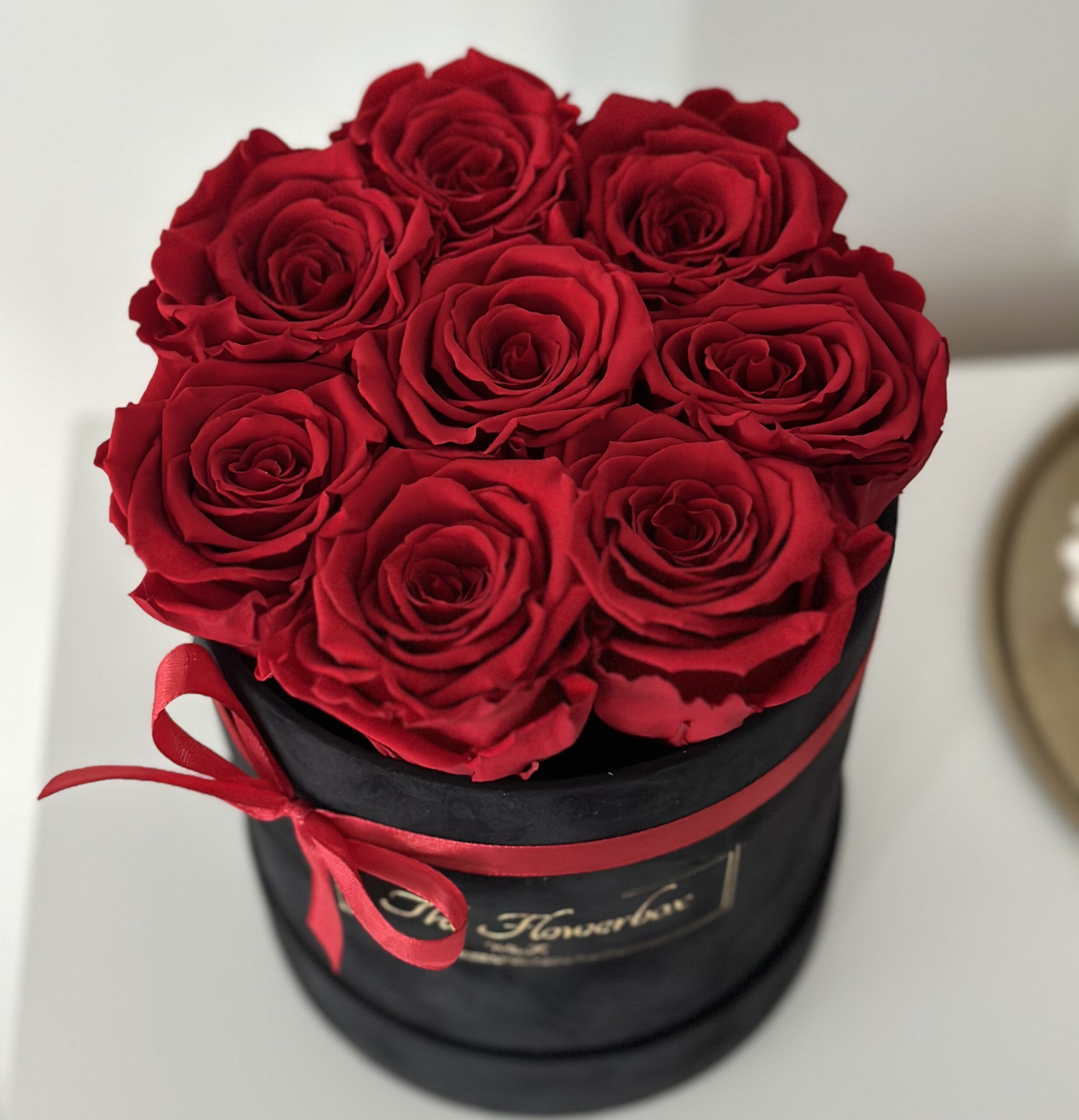 Niezwykła kolekcja wiecznych róż w naszych ekskluzywnych, welurowych pudełkach. Nasze wieczne róże to nie tylko kwiaty, to trwała manifestacja piękna. Dzięki innowacyjnej technologii stabilizacji żywych kwiatów, róże zachowują swoją świeżość i wyjątkowy urok na lata.