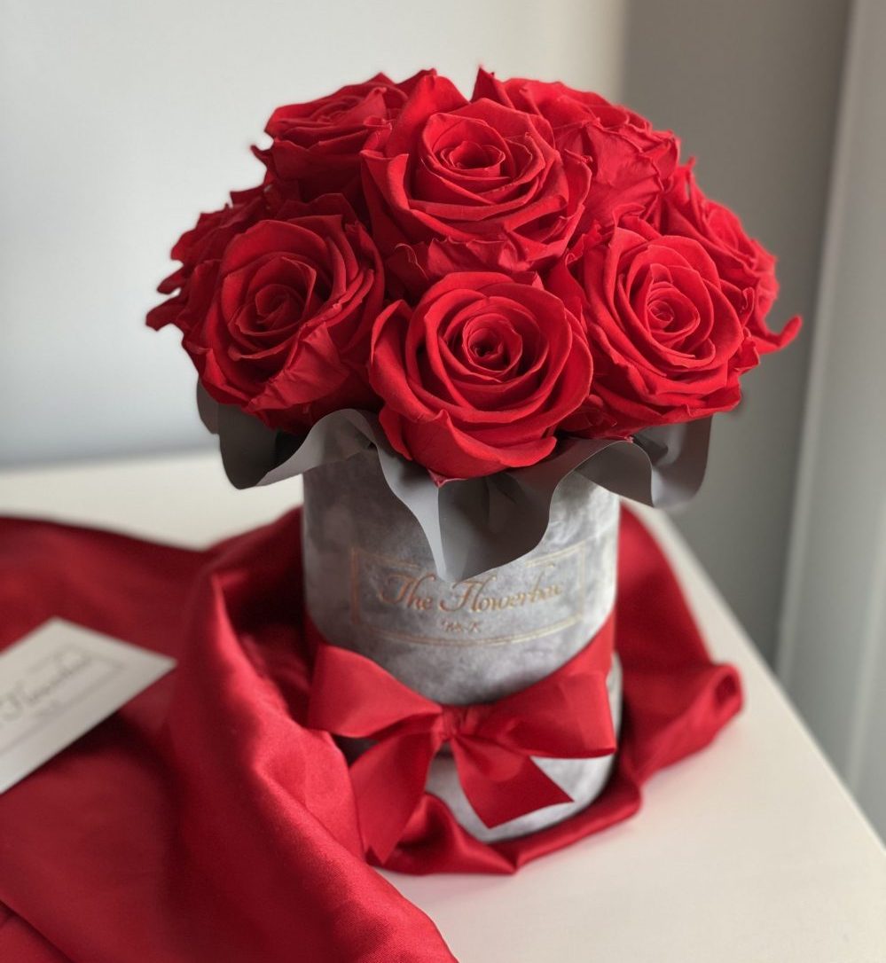 Czerwone wieczne róże – szary box