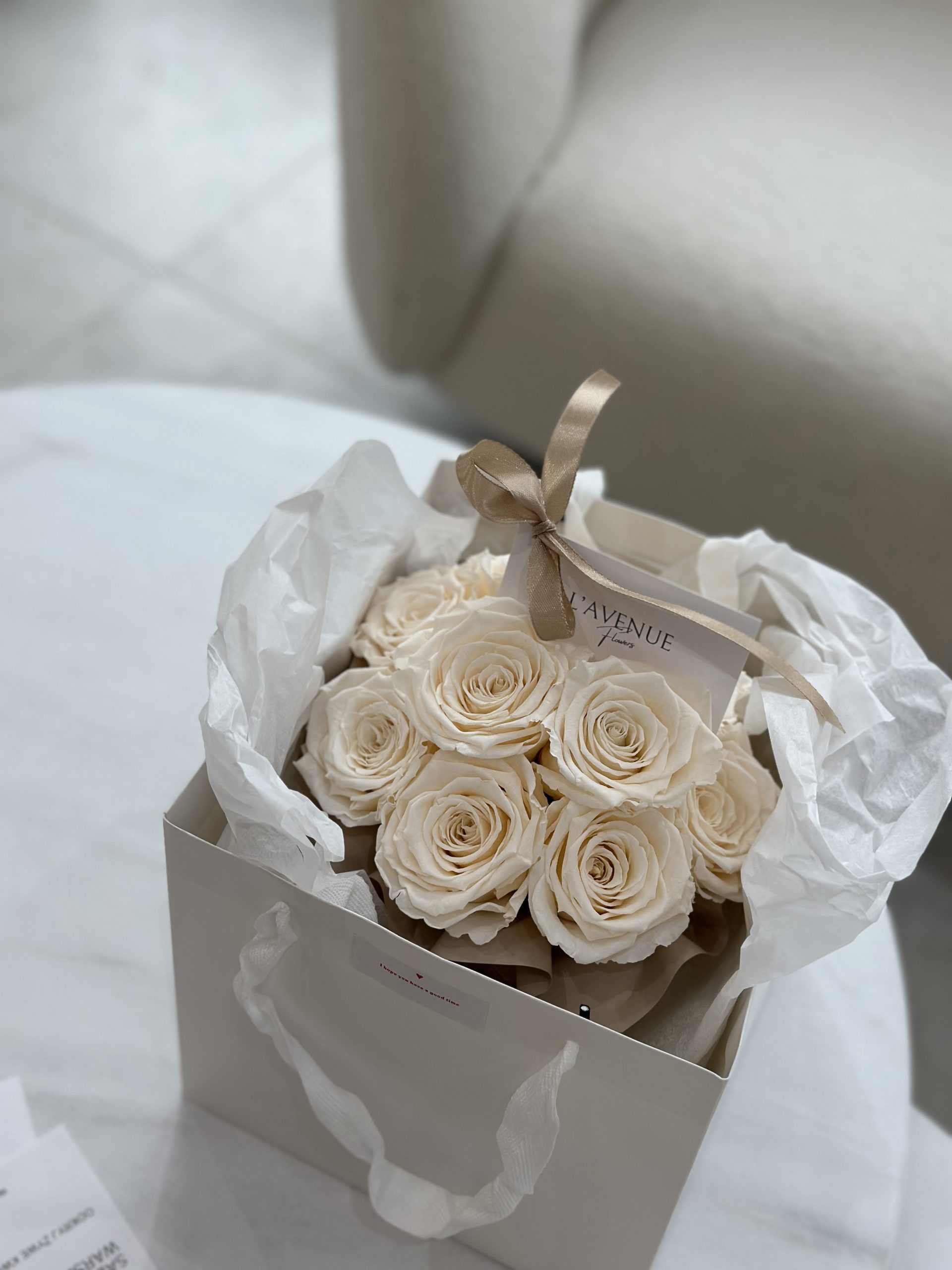 Kremowe wieczne róże – beżowy box